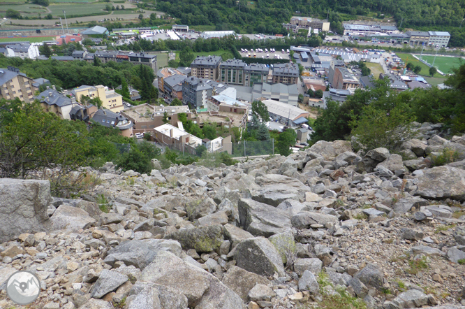 Creuem a l'altre costat del riu Valira del Nord i seguim un tram per aquest marge de riu. Retornem a la riba dreta una mica més avall. Seguim ara pel camí del Pont Pla, per un tram que tot i transcorre a tocar de la transitada carretera, és molt agradable i frescal. Travessem la carretera per sota (baixant per unes escales metàl·liques i deixant enrere un parell de trencalls que ens conduirien a Les Escaldes). Estem arribant a Andorra la Vella. Seguim les indicacions i enllacem amb el camí del