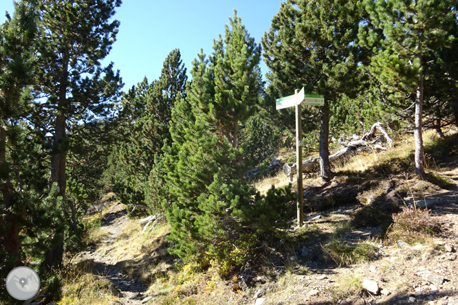 Entrem al Parc Natural Comunal Valls del Comapedrosa, trobem un cartell al costat del camí que així ho indica. El camí puja fort i no ens dóna treva, és un inici de ruta exigent. Avancem per una bonica pineda de pi roig (Pinus sylvestris), una de les espècies característiques de l'estatge montà en vessants assolellats.