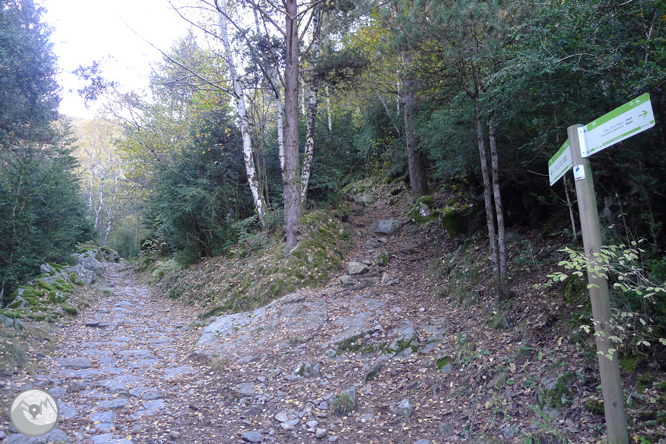 Anem baixant pel costat dret orogràfic de la vall. El camí, a trams empedrat, és preciós. Al cap d'uns 10 minuts arribem al petit nucli