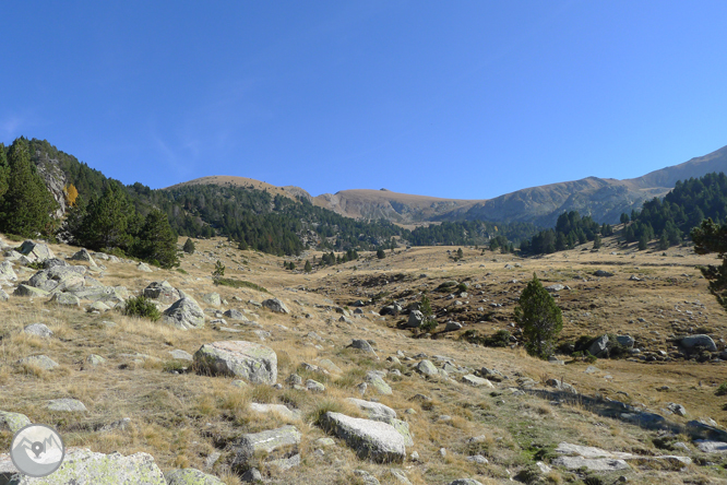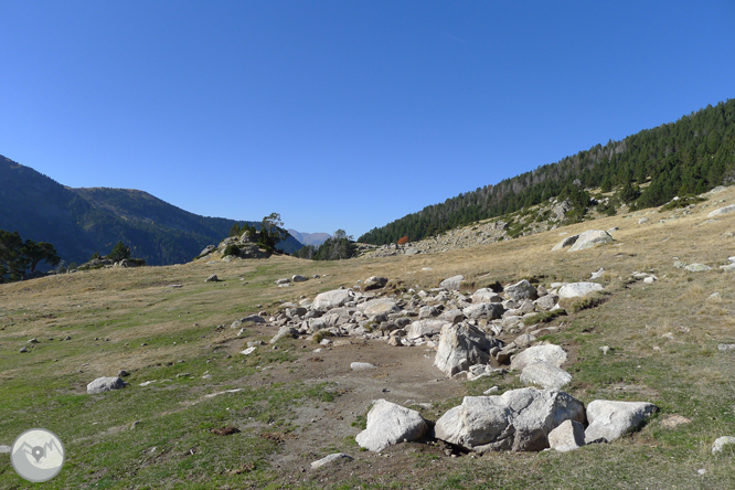 Pugem per un llom, creuem el riu de Claror i, una mica més endavant, desemboquem al GRP -el sender de llarg recorregut que dóna tota la volta al Principat d'Andorra i que està senyalitzat amb marques de pintura groga i vermella-. En aquest punt girem a la dreta (NO) i fem uns últims metres de pujada seguint el GRP fins al