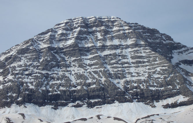 Tornem a recórrer la base de la punta Bazillac. Les parets que tenim davant nostre són espectaculars. Mirem cap amunt i veiem parets de més de 100m de roca calcària.
