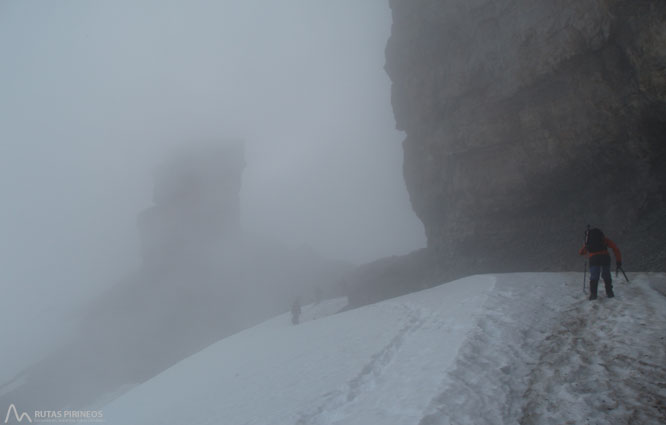 La boira ens dificulta veure-hi en direcció S, cap a la vall d'Ordesa.