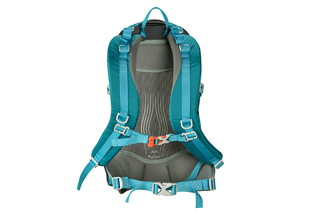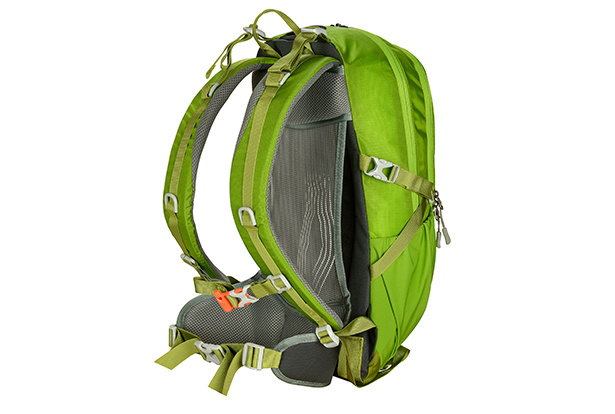 Tensor de pit regulable en altura, cintes compressió lateral, butxaca reixetes laterals, ronyonera amb butxaques, porta bastons, accés hydrobag.