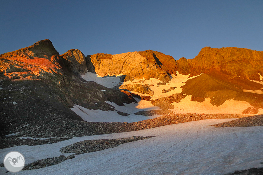 El primer dia farem l'aproximació fins al refugi de Bachimaña, situat en un indret privilegiat. El segon dia pujarem per la zona dels ibones Azules fins assolir el coll de l'Infierno. A continuació creuarem la Marmolera, passarem pel Garmo Blanco i encadenarem els pics que formen els Infiernos: Occidental (3.073m), Central (3.082m), Oriental (3.076m), a més dels pics Arnales (3.000m) i  Pondiellos (2.906m) des d'on tindrem una vista esplèndida de tot el massÃs. I ja només ens quedarà el descens fins al refugi Casa de Piedra, on acabarem una jornada alpina memorable!