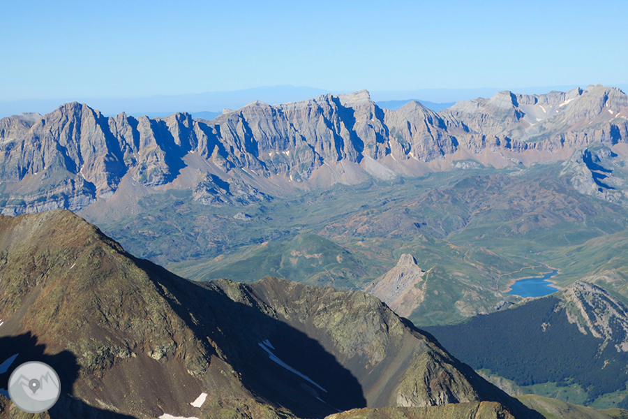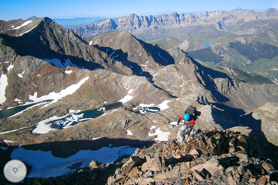 Els pics dels Infiernos, amb alçades que superen els 3.000m, són un conjunt de cims que estan units per una imponent cresta. Aquests pics i la seva cresta separen el circ de Piedrafita, al nord de Sallent de Gállego, del Balneari de Panticosa. Poder observar de ben a prop la peculiar Marmolera, una veta dolomÃtica de roca de marbre incrustada a la muntanya que contrasta amb els colors més foscos dels esquistos i el granit que formen el massÃs, bé mereix l'exigent esforç d'aquesta ascensió. Però la ruta també ens farà gaudir d'uns paisatges de somni, amb infinitat d'estanys d'origen glacial, un refugi situat en un dels indrets més bonics del Pirineu i un gran ambient d'alta muntanya en tot el recorregut carener mentre anem enllaçant diversos tresmils.