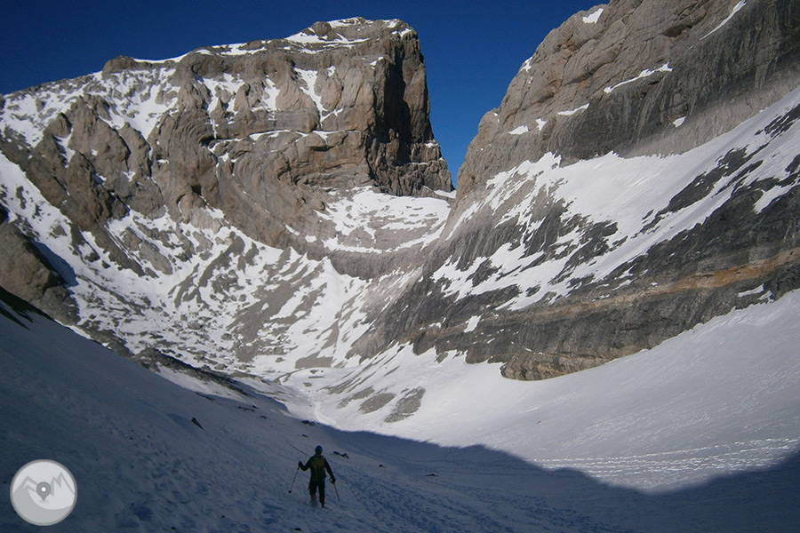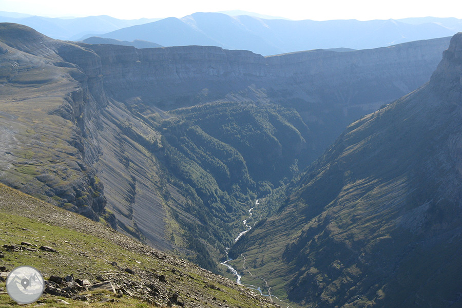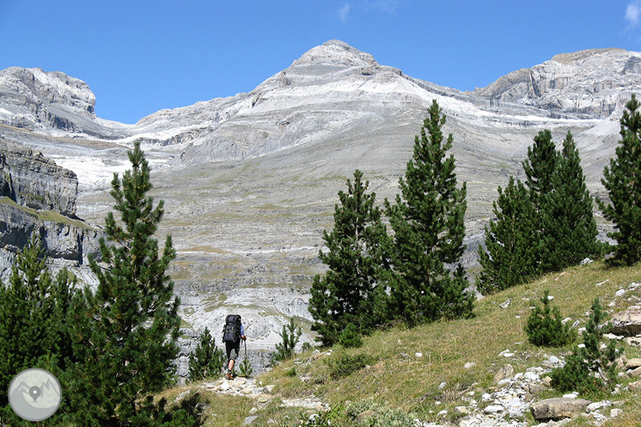 Des del poble de Nerín agafarem el servei d'autobús llançadora que hi ha habilitat per realitzar l'aproximació fins al punt d'inici de la ruta. Començarem a caminar a les immediacions de Cierracils, a uns 2.200m d'altitud. Primer pujarem fins al refugi de Góriz, on farem una parada per recuperar forces. Des d'aquest punt continuarem pujant fins al Lago Helado, punt des d'on atacarem l'Escupidera que ens portarà fins al cim del Mont Perdut. Realitzarem la baixada pel mateix recorregut.