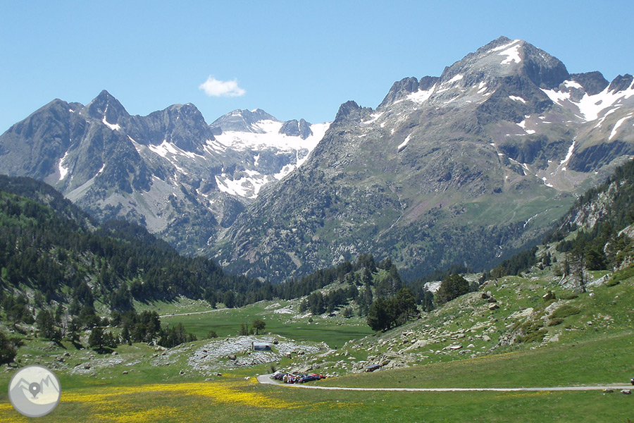 4:15h del matà a Benasc (a l'entrada del poble davant de la botiga Barrabés, que està situada entrant a mà dreta). Des d'aquest punt ens desplaçarem en cotxes particulars fins a l'Hospital de Benasc (uns 11 km) on, si fem la ruta entre el 21/06 i el 14/09, deixarem els vehicles i agafarem a les 5:00h l'autobús públic que ens durà fins a la Besurta (uns 30 minuts). Si fem la ruta en d'altres dates, l'accés a la Besurta està obert i hi podrem pujar amb els cotxes particulars.