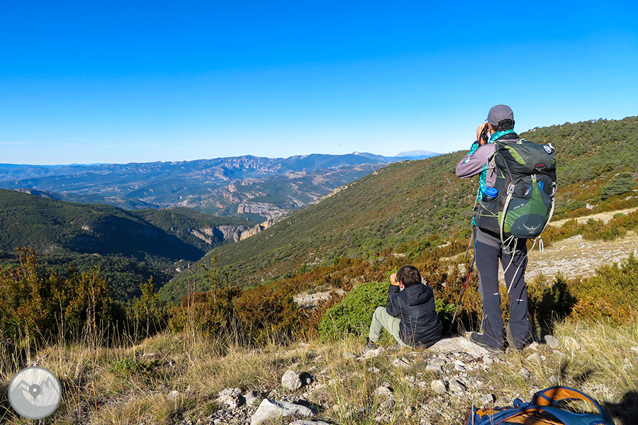 El segon dia de la travessa ens aixecarem ben d'hora per escoltar novament la brama. Després començarem a caminar en direcció al Cap de Roques de Solduga, parant en espais concrets per fer observacions de fauna. Ens dirigirem cap a Solduga i l'Espluga de Cuberes on veurem les restes d'un assentament -un paratge inhòspit amb vistes privilegiades!-. Quan arribem a la pista situada al bosc de Pentina, un taxi 4x4 ens recollirà i ens portarà de tornada fins a Tremp, on donarem per finalitzada aquesta experiència única i inoblidable!