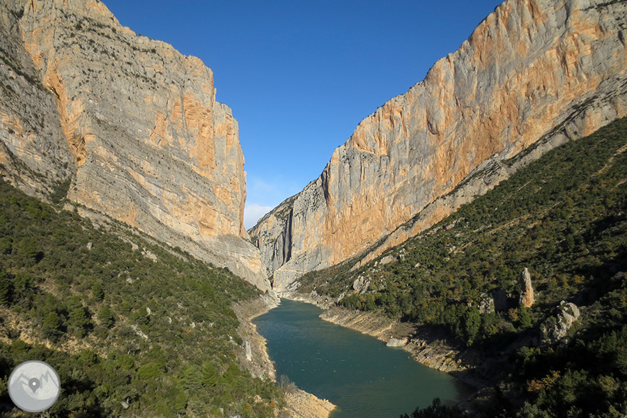 L'itinerari que us proposem té com a punt d'inici l'ermita de la Mare de Déu de la Pertusa. Des d'aquest punt de la cara sud del Montsec caminarem en direcció al congost. Passarem pel Mas Carlets, deixarem enrere el congost del Seguer, creuarem el congost de Mont-rebei pel camí excavat a la roca, visitarem la cova Colomera i arribarem finalment fins el pont penjant de Sant Jaume. La tornada la farem desfent el mateix camí, cosa que ens permetrà gaudir d'una nova perspectiva del congost i del magnífic entorn.