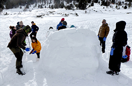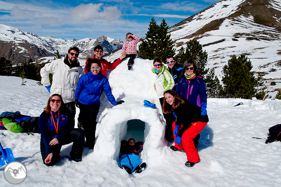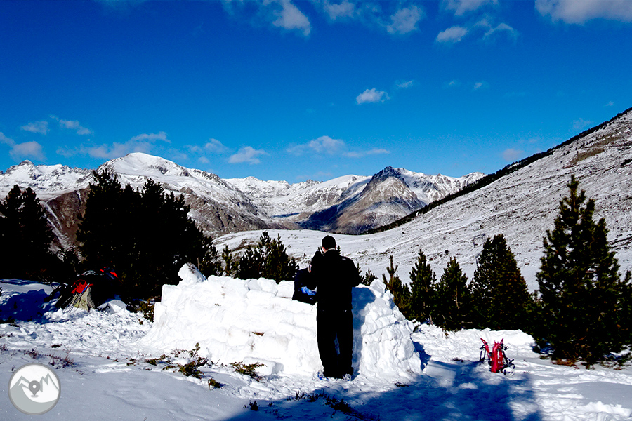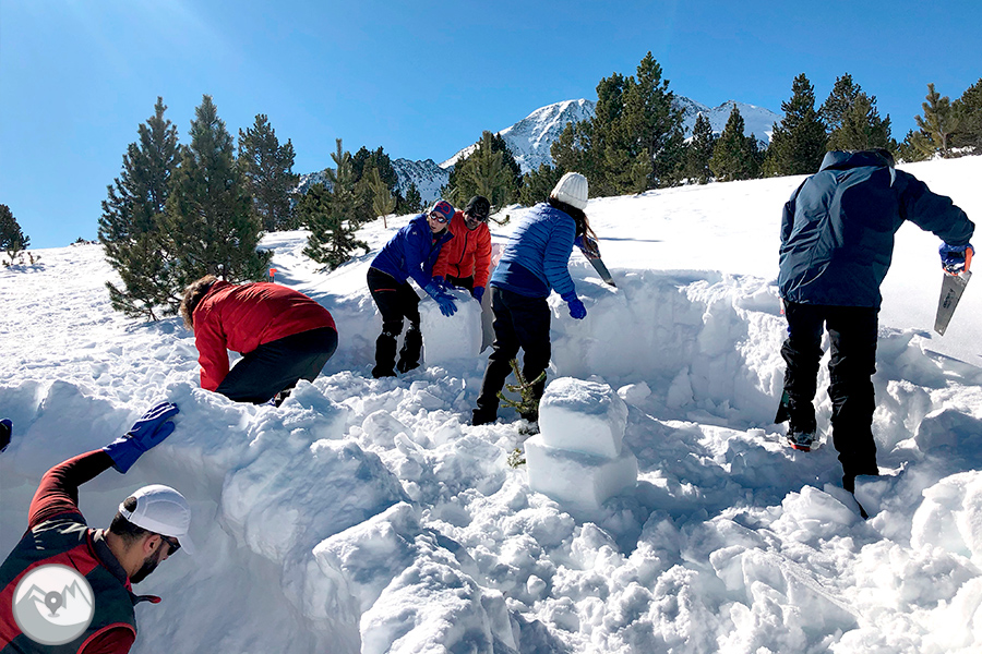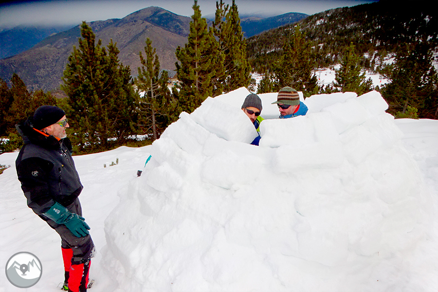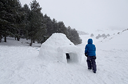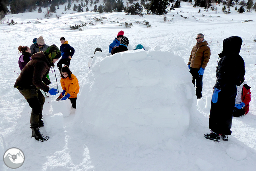 Des del punt de trobada ens desplaçarem fins a un indret proper. Durant aquesta curta aproximació, ens fixarem molt bé en les condicions de la neu per tal d'escollir el millor lloc per construir-hi els iglús. A continuació, en grups petits i amb els consells i l'ajuda del nostre guia, anirem construint els iglús. Si fem un bon treball en equip, acabarem la jornada dins del nostre magnífic iglú!
