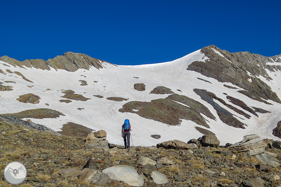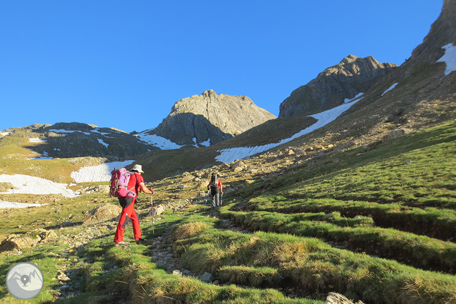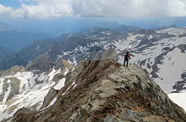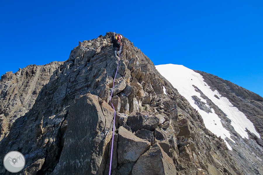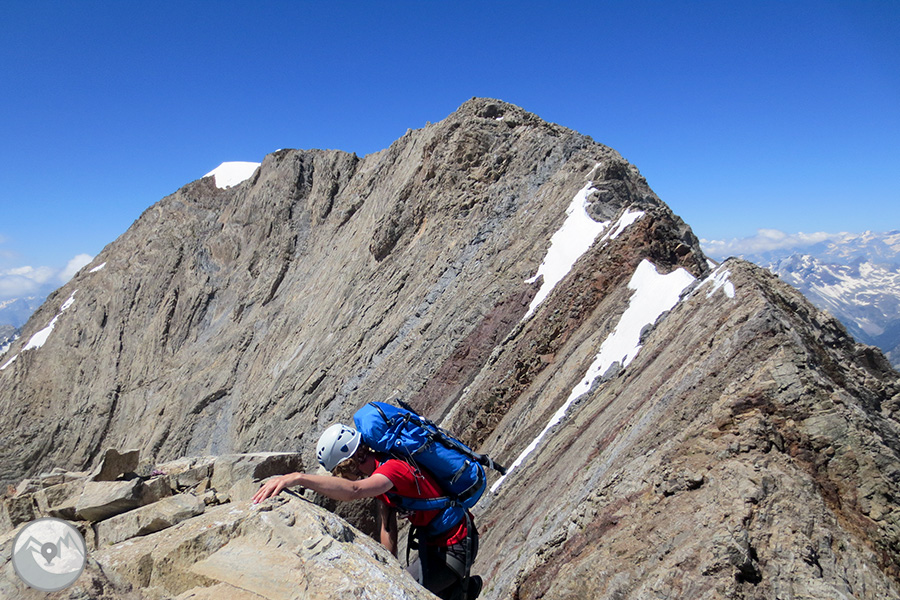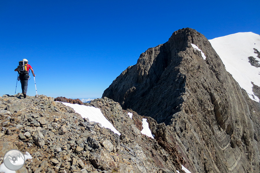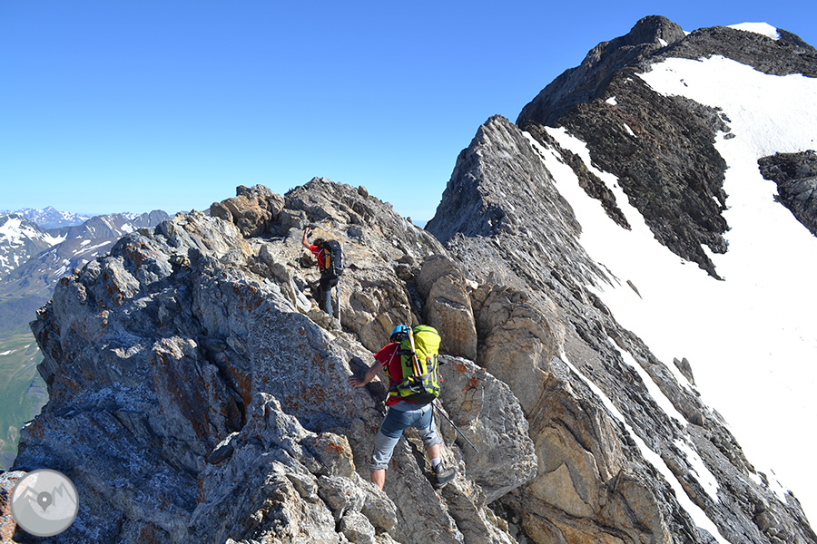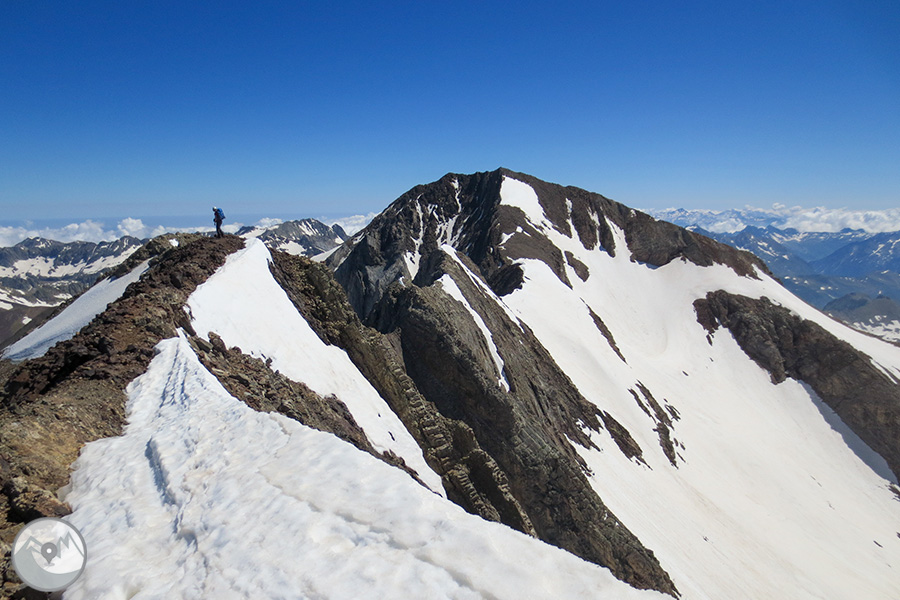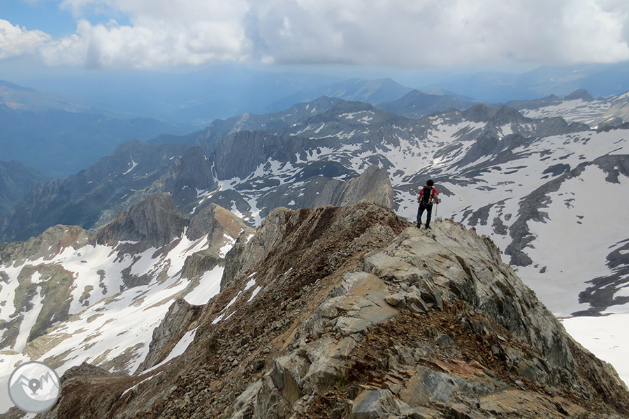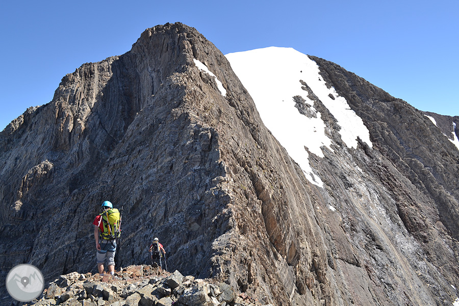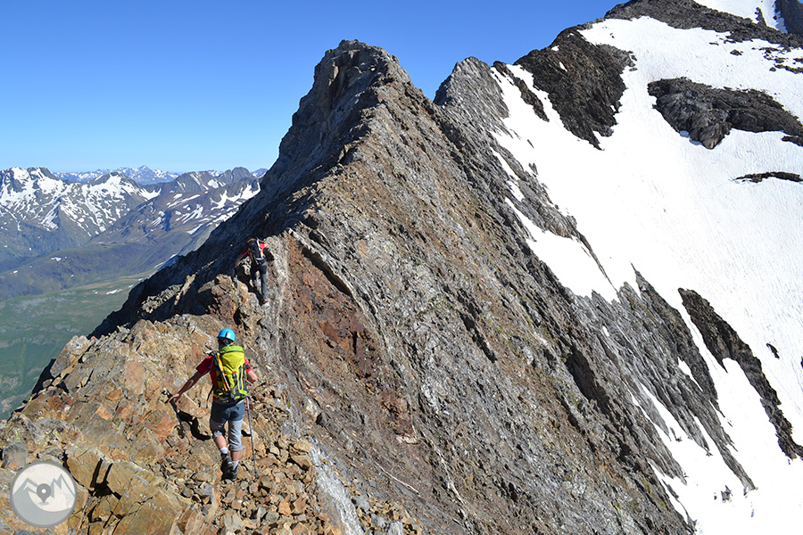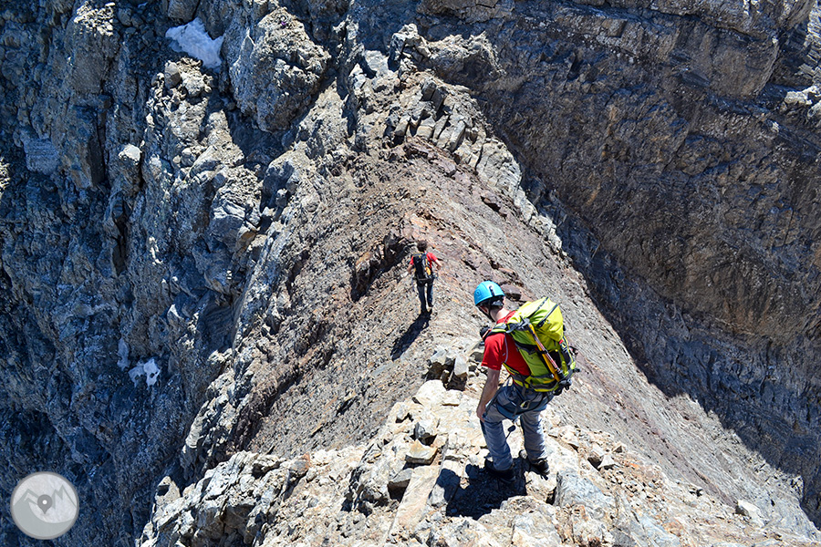 Et proposem ascendir el Posets -el segon cim dels Pirineus- per la panoràmica i espectacular cresta d'Espases, enllaçant els cinc tresmils que queden units per ella. Aquesta és una proposta exigent adequada per a excursionistes amb experiència prèvia en alta muntanya i recorreguts tècnics. La cresta d'Espases ens ofereix un llarg recorregut que majoritàriament transcorre per una cresta evident però que també ens exigeix superar alguns trams aeris com ara el conegut i emocionant pas del Funambulista, un tram espectacular que ens conduirà fins a la Tuca de Llardaneta.