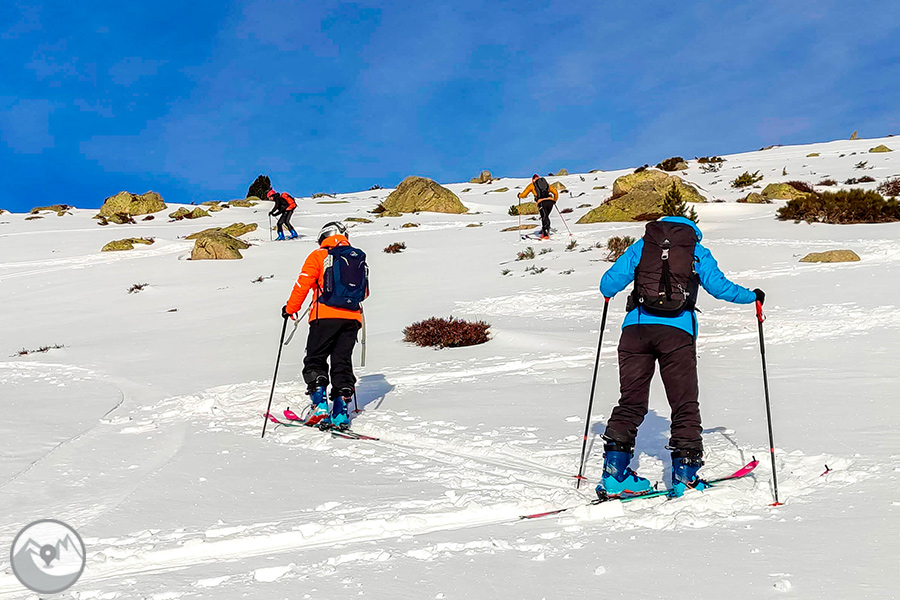 Durant el primer dia desenvoluparem bona part del temari del curs, explicant tots els conceptes necessaris per familiaritzar-nos amb el material, aprofundint en les diverses tècniques de l’esquí de muntanya i en la preparació d’una sortida d’esquí de muntanya tenint en compte la seguretat. Posarem en pràctica els continguts fent diversos exercicis i tallers en un entorn segur i controlat. El segon dia seleccionarem una bona ubicació per fer un recorregut d’esquí de muntanya posant-nos en situació real sobre el terreny (per exemple: cara nord del Puigmal, pic de la Mina, pic de Pedrons...) i, per tant, posant en pràctica tots els coneixements adquirits el primer dia.