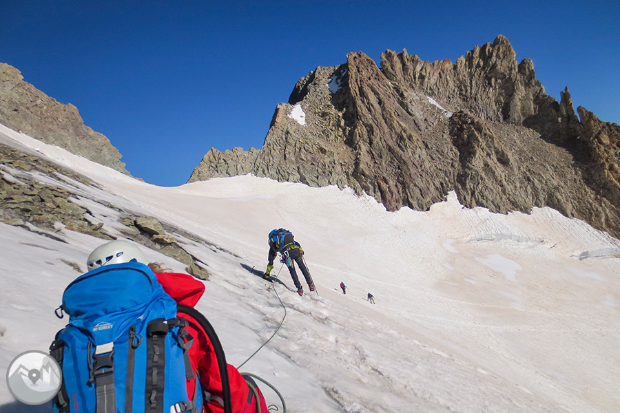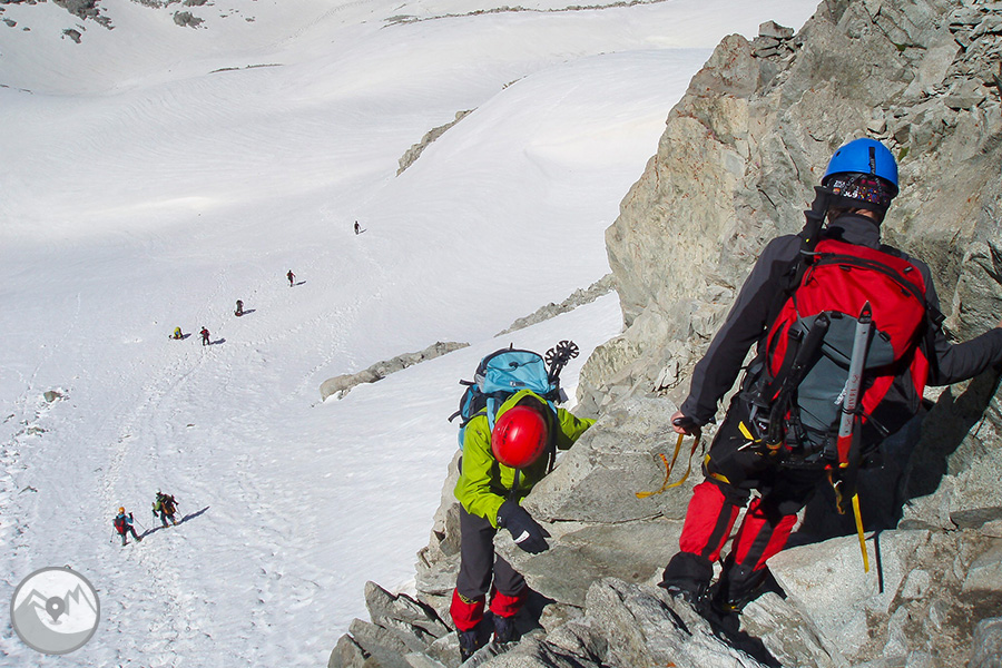 El curs és una proposta ideal per a persones amb experiència en muntanya hivernal i en l’ús de piolet i grampons però sense experiència ni autonomia en l’ús de corda i ancoratges a la neu i/o roca. L’objectiu principal del curs és perfeccionar les tècniques d’iniciació a l’alpinisme i adquirir els coneixements per a poder abordar de manera autònoma corredors de neu, pendents de neu pronunciats i ressalts amb gel o terreny mixt.