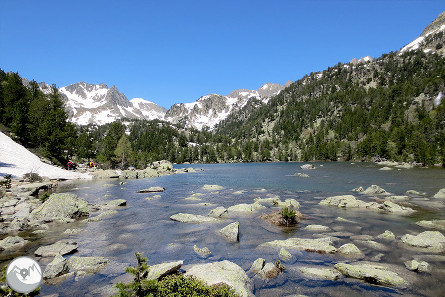A Espot agafarem el servei de taxis 4x4 del Parc Nacional fins a l'estany de Sant Maurici. Començarem la ruta vorejant aquest estany per la seva riba nord a través d'un sender que ens enlaira fins al Salt de Ratera, a la solana de la vall. Seguim fins a l'estany de Ratera i l'estanyola de Ratera, punt des d'on accedim al mirador de l'Estany. Passem a l'obaga de la vall i davallem novament als voltants de l'estany de Sant Maurici. Els taxis 4x4 del Parc Nacional ens retornen fins a Espot.
