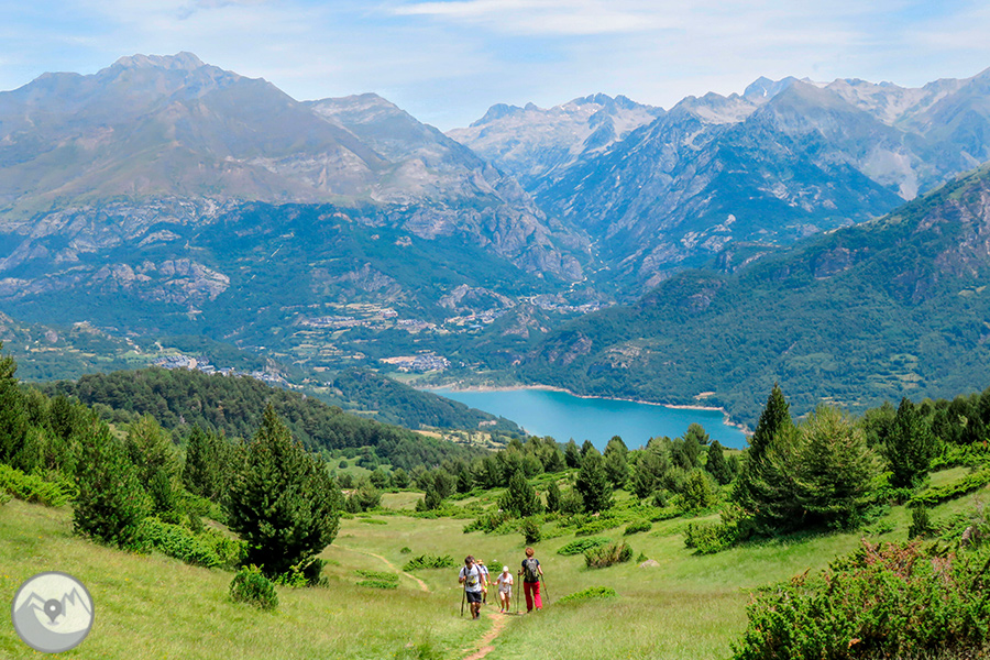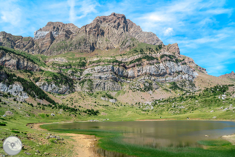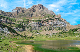 Visitem una encantadora vall oberta dominada per les muralles calcàries de la serra de la Partacua. Entre prats verds, bosquines de pi i torrents que baixen plens d’aigua, el camí ascendeix suaument fins a l’estany, que reposa al peu de les impressionants parets rocoses del Peña Telera.