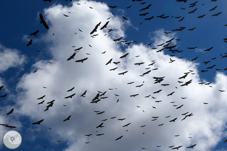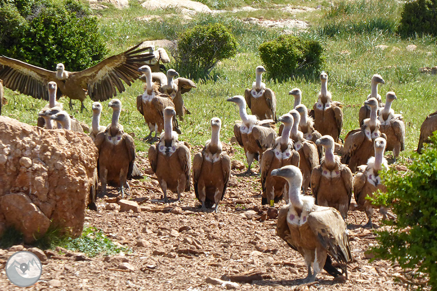 Començarem l'activitat fent una caminada còmode i tranquil·la d'aproximadament 1h fins a l'entorn del mas Gramuntill. Caminarem pels peus dels bonics Rocs de Queralt tot vorejant el Tossal de Sant Jaume, on descobrirem un terreny de mitja muntanya dominat per les roques conglomerades tan característiques d'aquesta zona prepirinenca. A prop del mas de Gramuntill, viurem l'experiència única i exclusiva de veure alimentar els rapinyaires des d'un canyet de la pròpia finca. Gaudirem d'un gran espectacle que ens permetrà admirar de ben a prop els grans voltors europeus! Finalment, farem el retorn a peu fins al punt d'inici de la caminada.