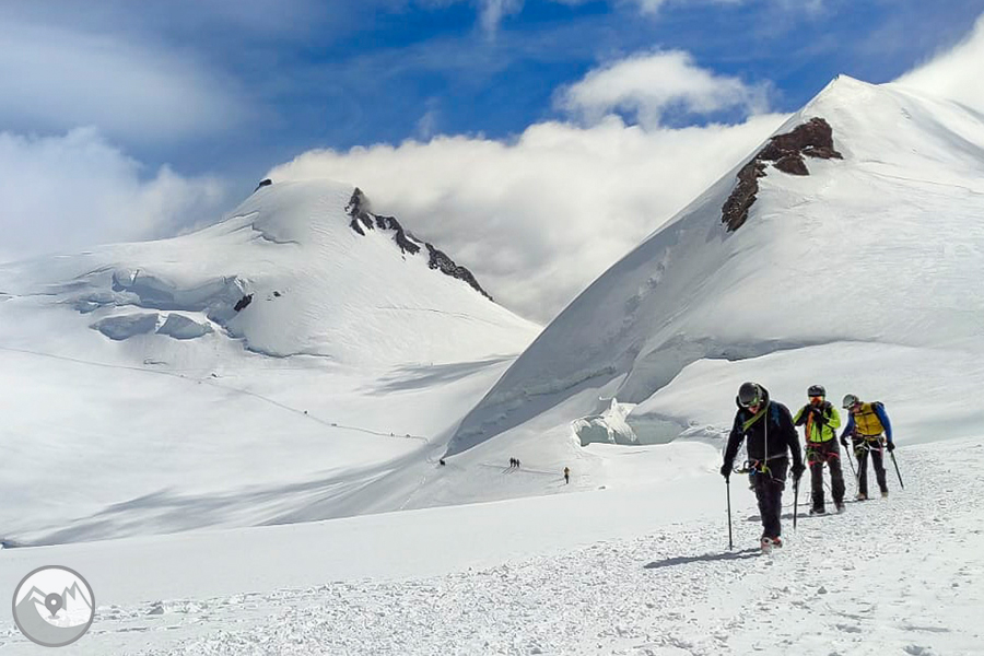 Aquesta proposta també és ideal com a preparació per a l’ascensió al Montblanc, tant per a persones que el tinguin com a objectiu a curt termini com per aquells que el vulguin afrontar a anys vista. L’ascensió progressiva a diversos cims de més de 4.000 metres, el treball en terreny glacial, la gestió de l’alçada i les pernoctacions en refugi d’alta muntanya permeten adquirir experiència, confiança i autonomia en un entorn molt similar al del Montblanc, convertint aquest programa en una excel·lent etapa prèvia dins del recorregut alpí de qualsevol alpinista.