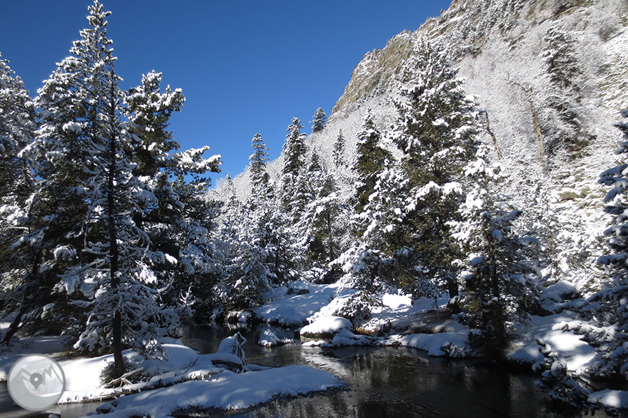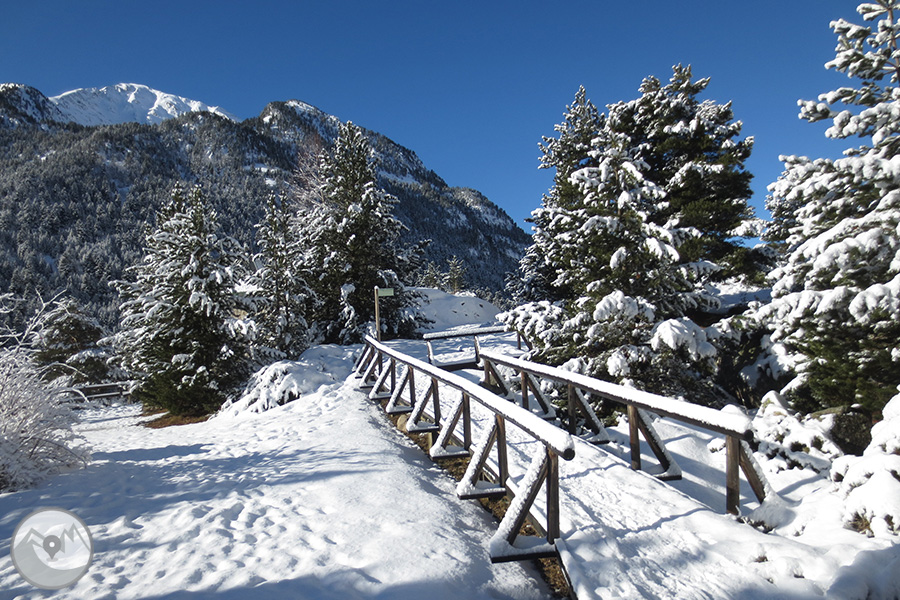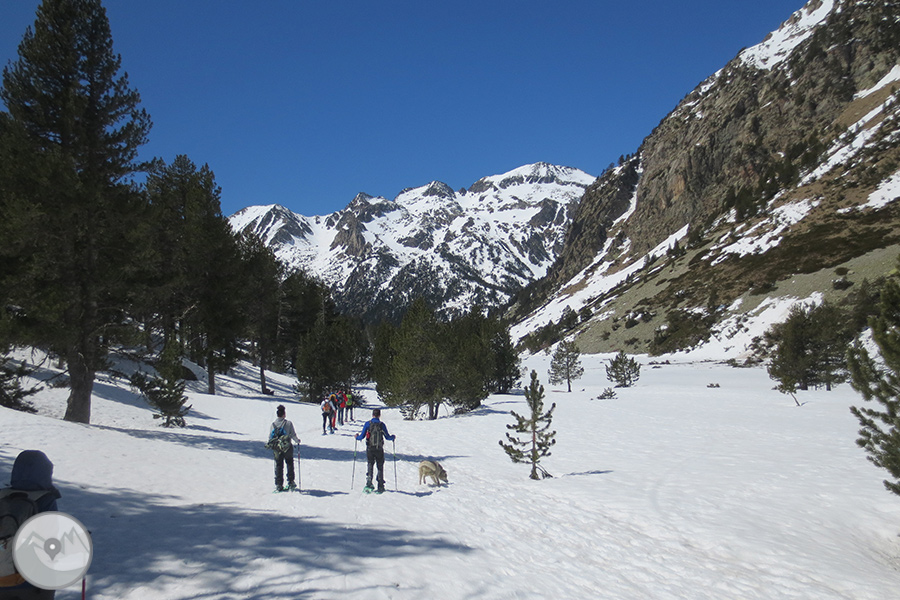 Des de Boí pujarem amb el servei de taxis 4x4 del Parc Nacional fins a la caseta d'informació del Parc al Planell d'Aigüestortes. Primer visitarem el mirador del Sant Esperit, que ens ofereix unes vistes meravelloses de la vall de Sant Nicolau. Després agafarem el camí que puja cap al Planell Gran i els Prats d'Aiguadassi. Deixarem enrere el refugi de la Centraleta i continuarem fins al refugi de l'Estany Llong. Finalment pujarem fins al mateix Estany Llong, que se'ns presentarà gelat i cobert de neu. Abans de tornar al Planell d'Aigüestortes, passejarem per l'interior del bosc fins al Pi de Peixerani. Farem la tornada fins Boí amb el servei de taxis 4x4 del Parc Nacional.