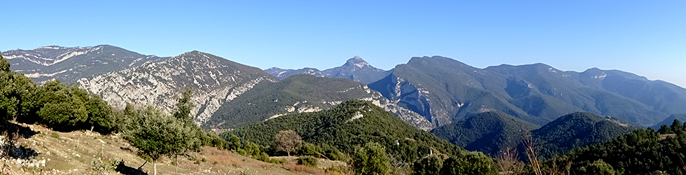 Extenses vistes de l'Alta Garrotxa des del mirador de Palomeres.