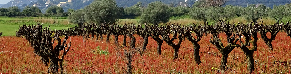 Sortim del poble pel carrer d'en Molla entre cases i camps fins a trobar-nos l'entrada del celler Mas Molla.